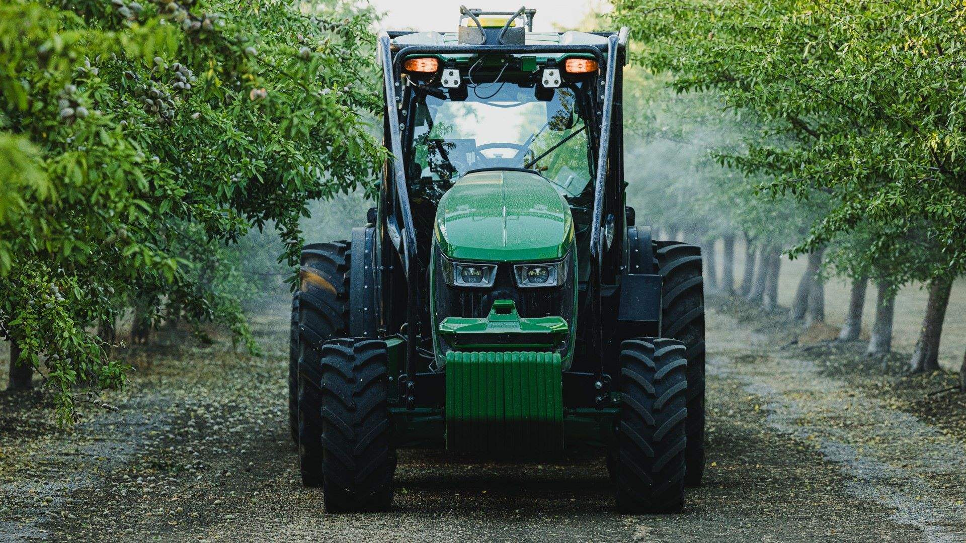 - John Deere autonomous diesel orchard tractor.