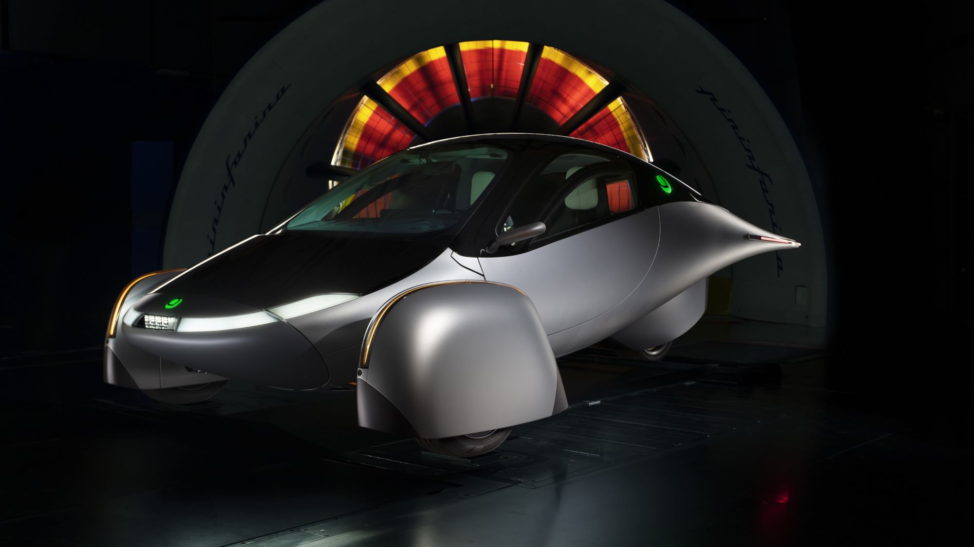 - Aptera SEV front side view in Pininfarina wind tunnel.