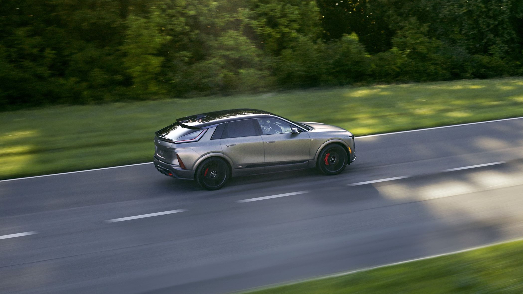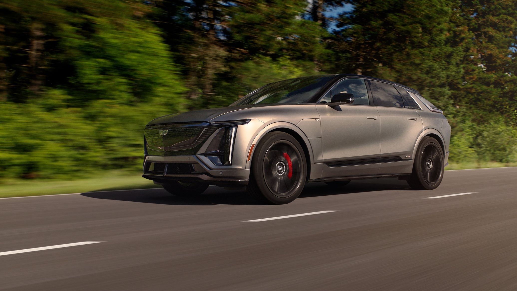 - Cadillac Lyriq-V front side in nature.