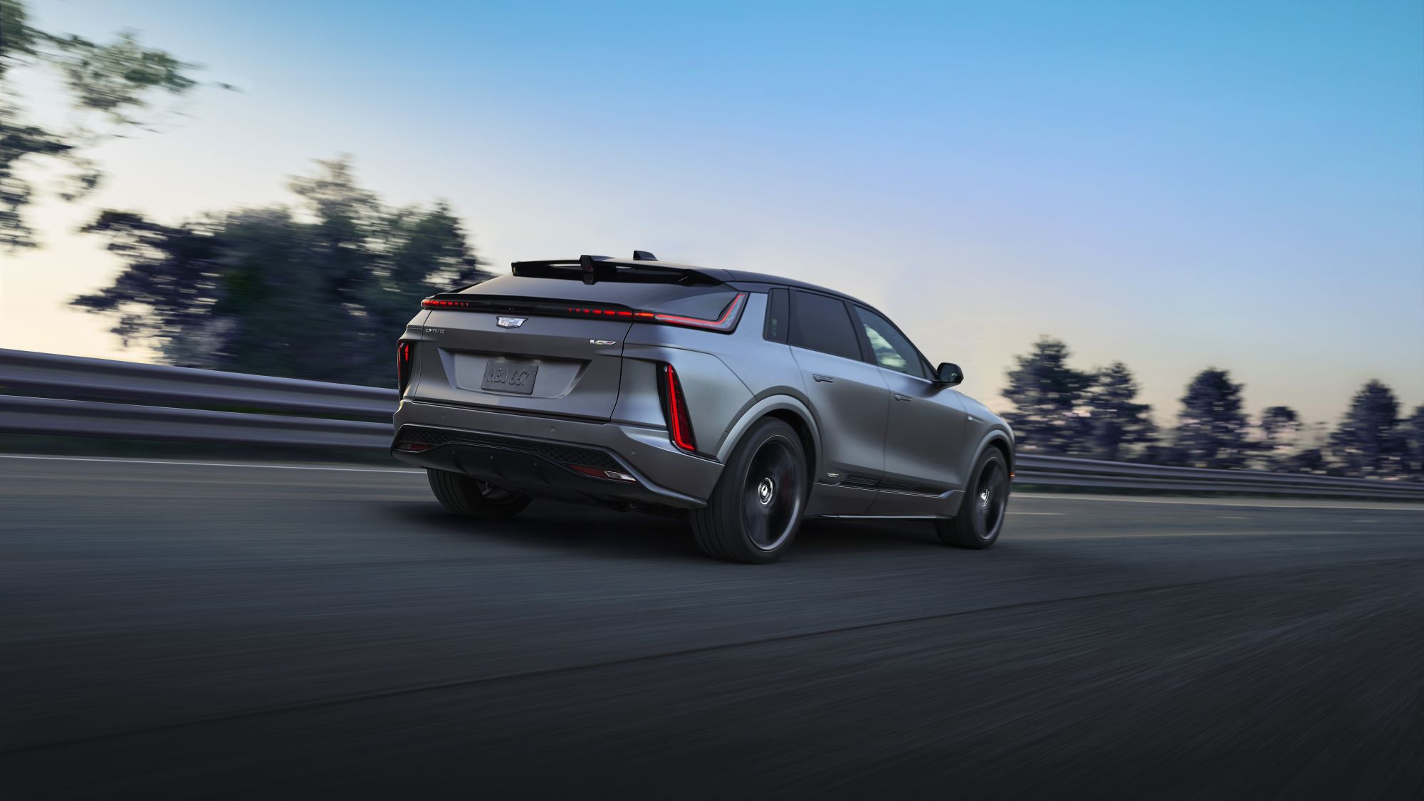 - Cadillac Lyriq-V rear side in nature.