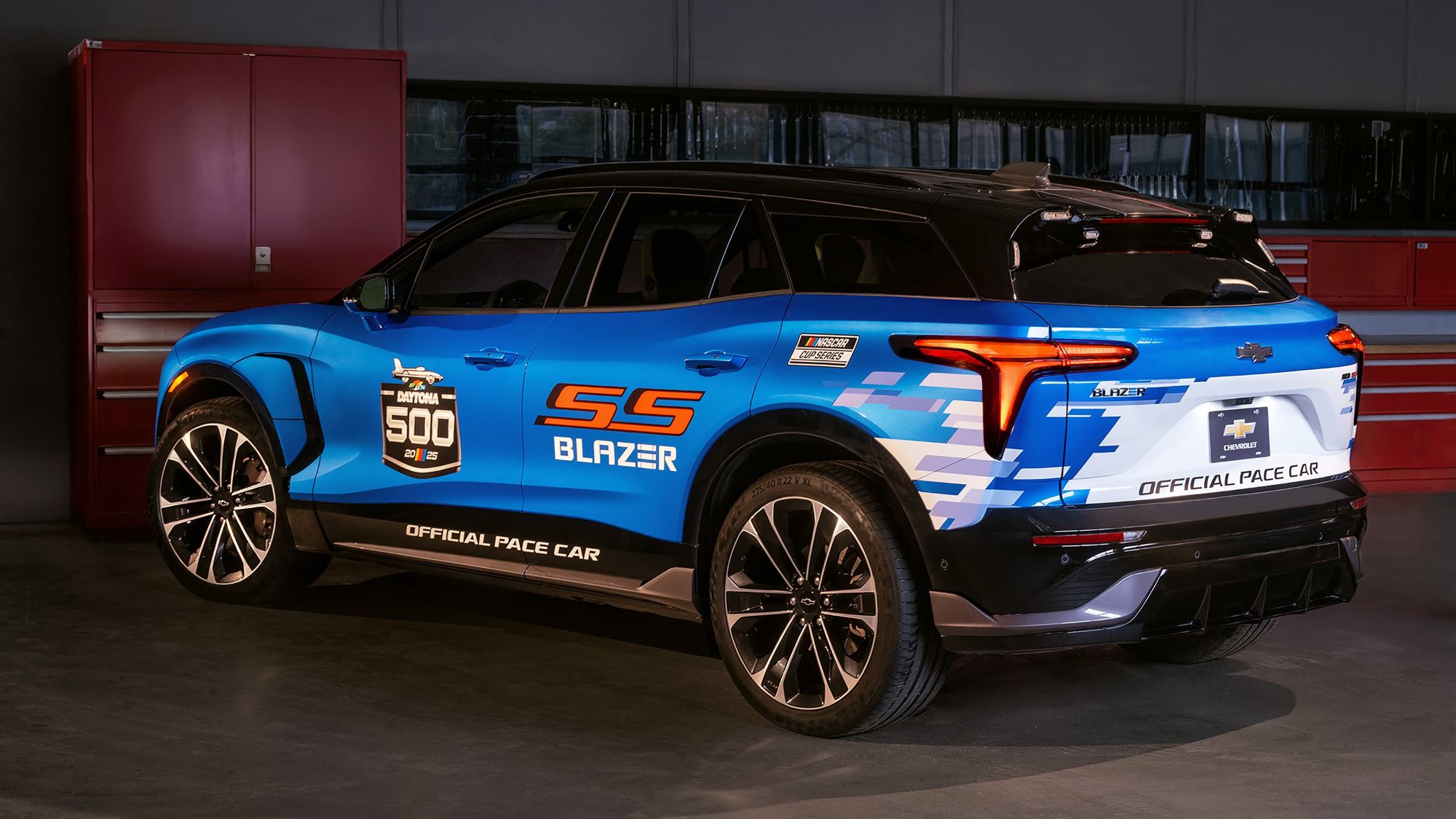 The Blazer EV SS pacing the Daytona 500 will feature honorary pace car driver Alan Ritchson. This marks the first time a Blazer has paced “The Great American Race,” the first time an EV has paced the race, and the 16th time Chevrolet has led the Daytona 500 field to green.