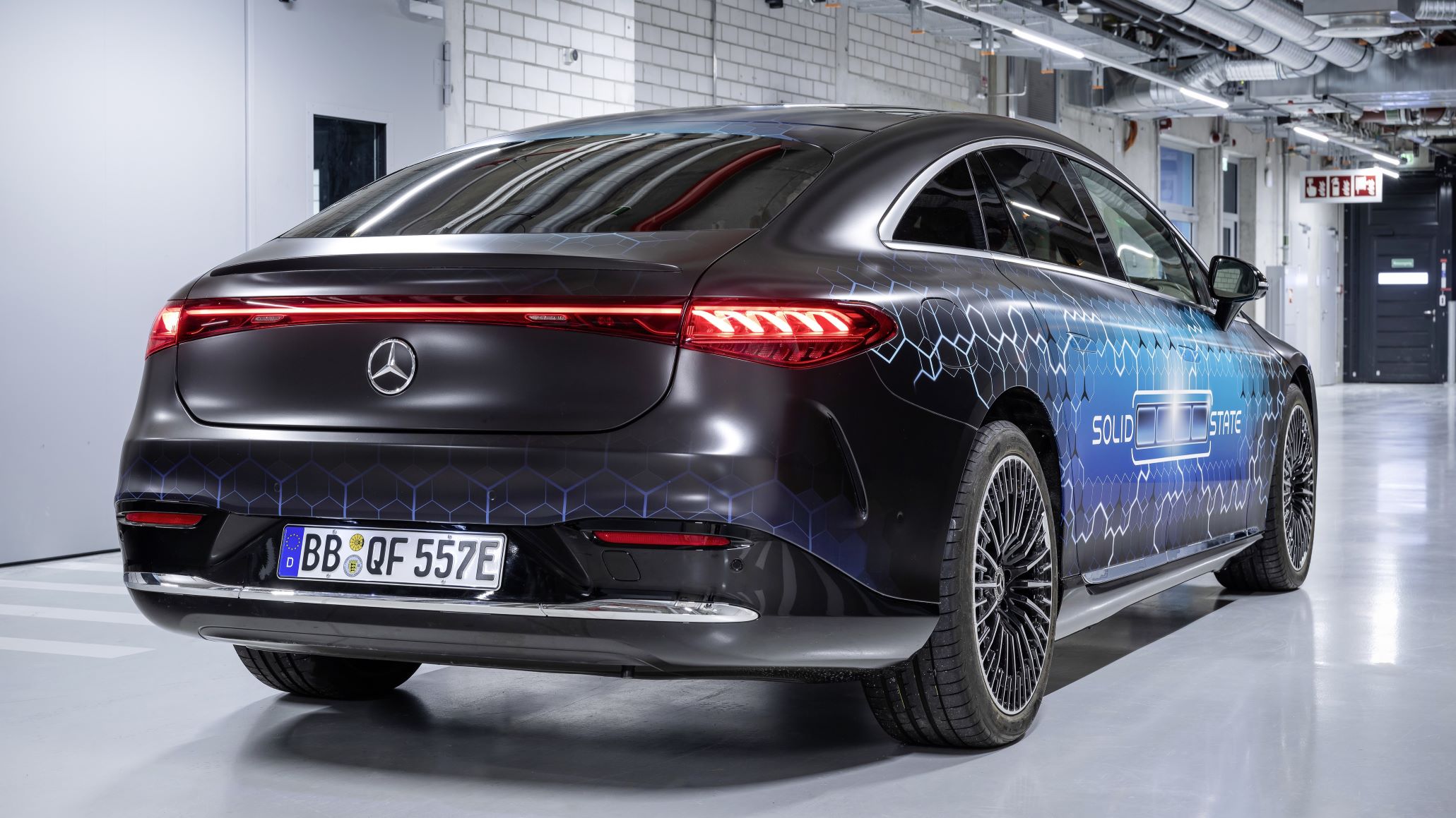- Mercedes-Benz EQS-based solid-state battery test vehicle rear side.