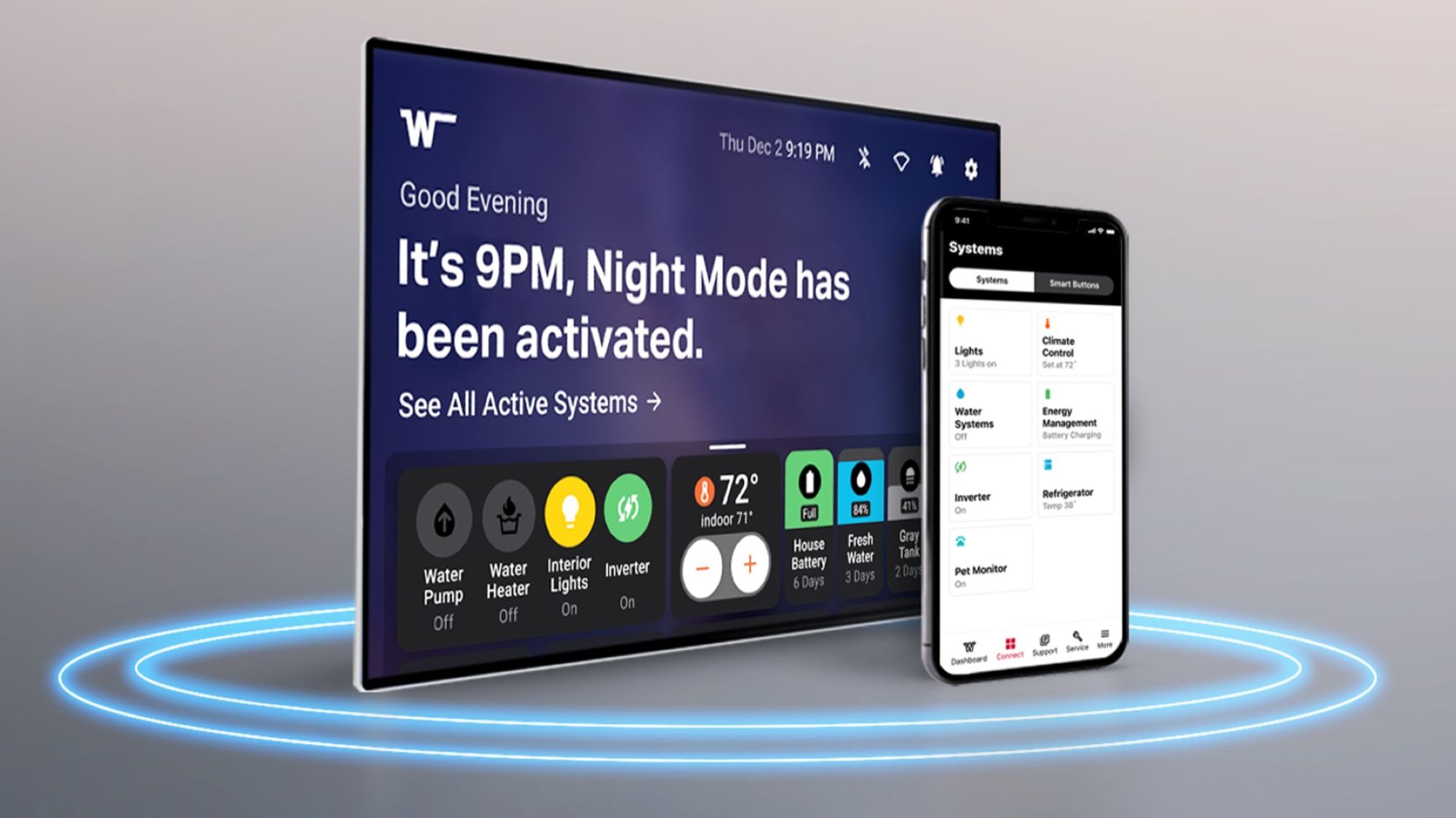 A key aspect of the technology is that it works proactively. For example, if the temperature inside the RV exceeds a pre-set parameter, it will open vents to let in fresh air before activating the A/C. It can retract awnings when a sensor detects windy conditions. Owners gain the added conveniences of remote and self-diagnostics, plus over-the-air software updates, to ensure they have the latest tools and resources for better experiences.