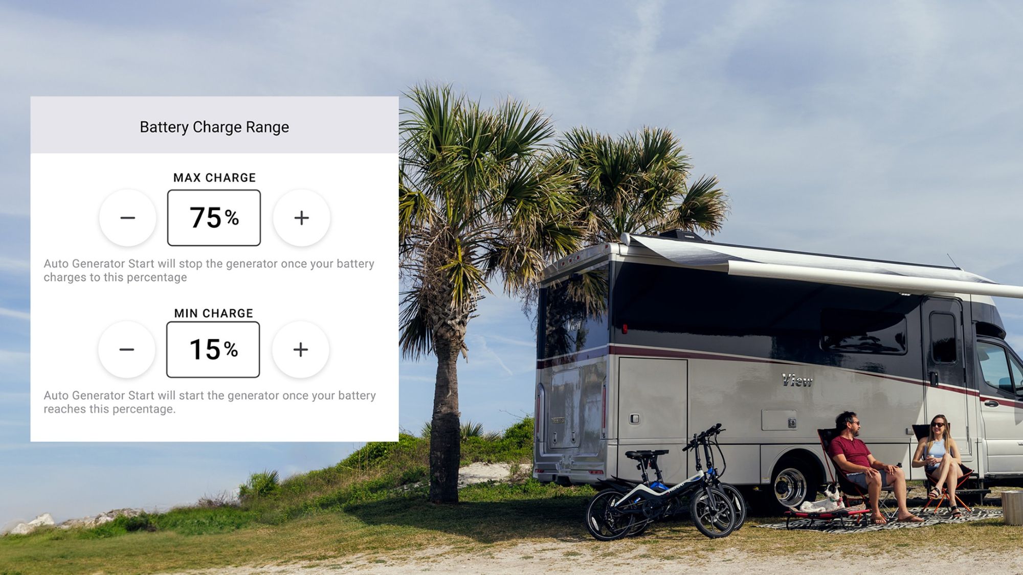 In an RV, systems can be drawing power unnecessarily when they’re not being used. For example, tank heating pads inadvertently left on during warmer periods are switched off above 40 degrees. If the vehicle interior needs to be cooled, the system will look at outside temperature and humidity and adjust most efficiently. Maybe it’s better if a vent fan is opened to pull air in or push air out before the air conditioner starts, to get to a temperature using less power. That type of intelligence built into the vehicle software helps consumers extend their boondocking time off the grid not connected to any other power source, said Fecker.