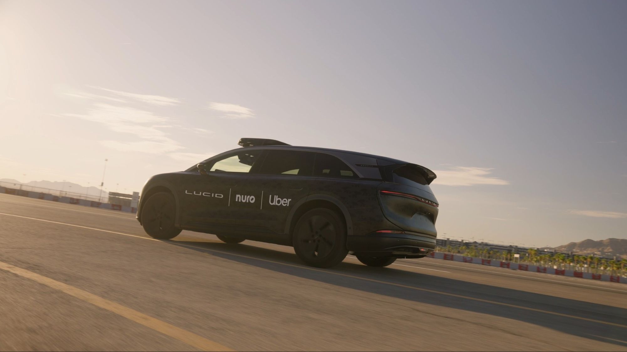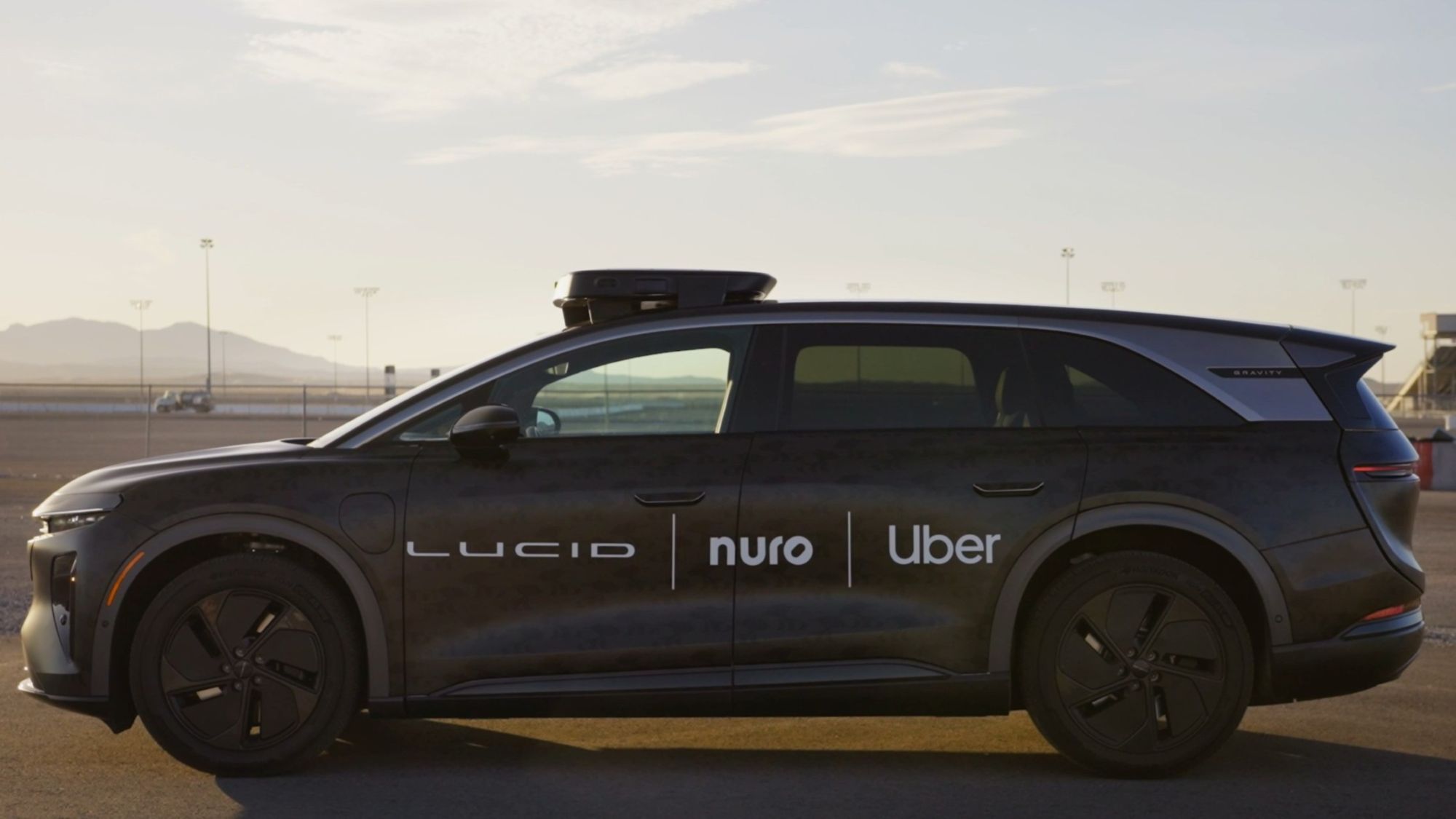 - Uber’s Lucid Gravity-based robotaxi at Nuro’s LVMS facility. 2