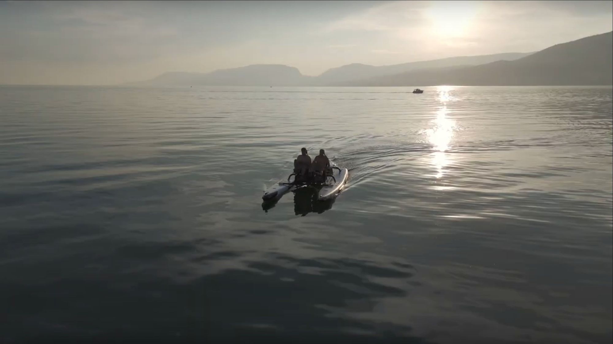 It is built around a Swiss-engineered, fully electric drive system with no mechanical chain, consisting of two motors that can fold up for shallow water and on land, with each rider having their own pedal generator to create power. Riders can customize their experience using adjustable gears, multiple assistance levels, and a steer-by-wire control system for precise handling.