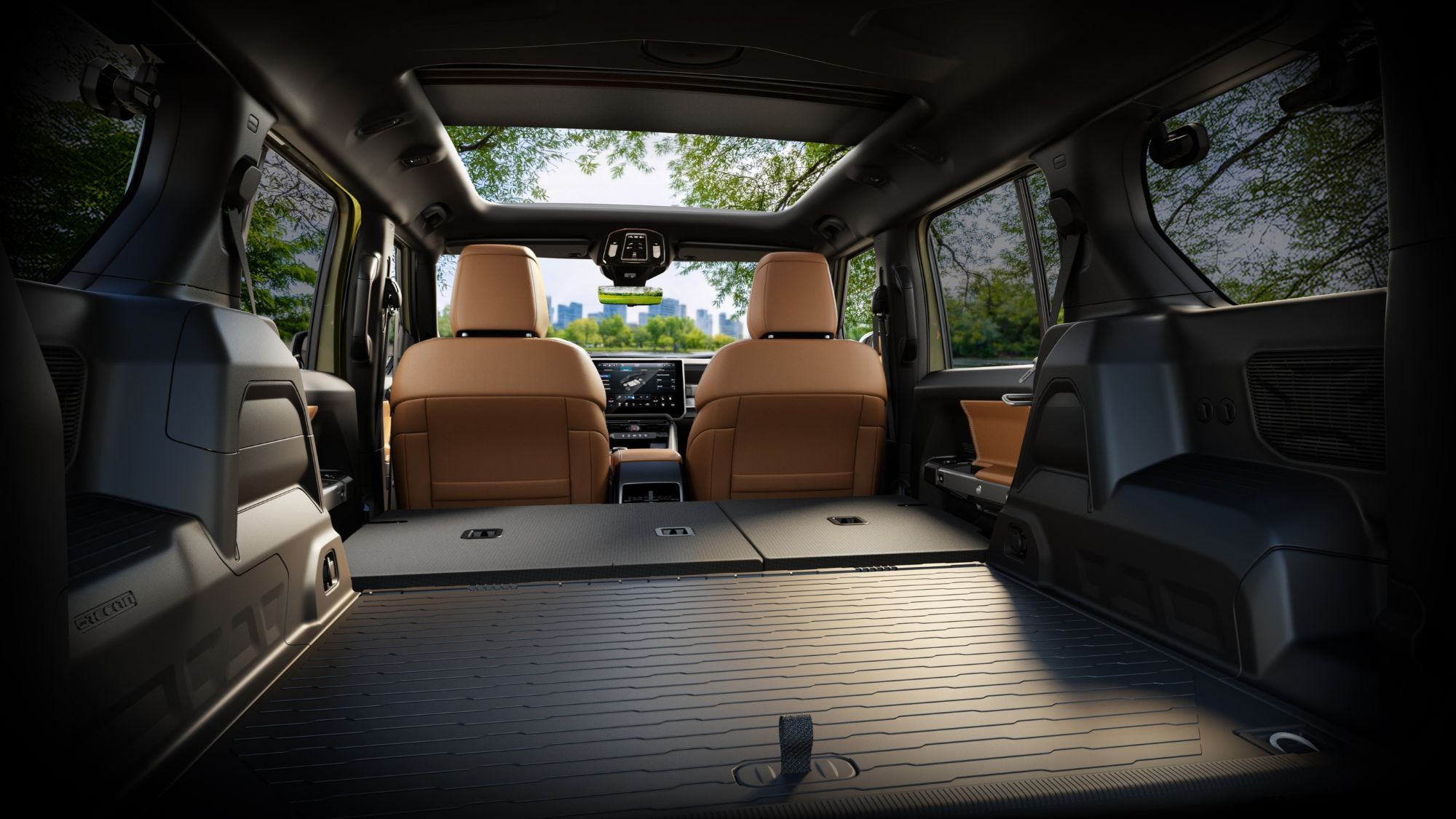 The modular door panels have removable elastic straps and interchangeable cargo solutions for flexible organization.