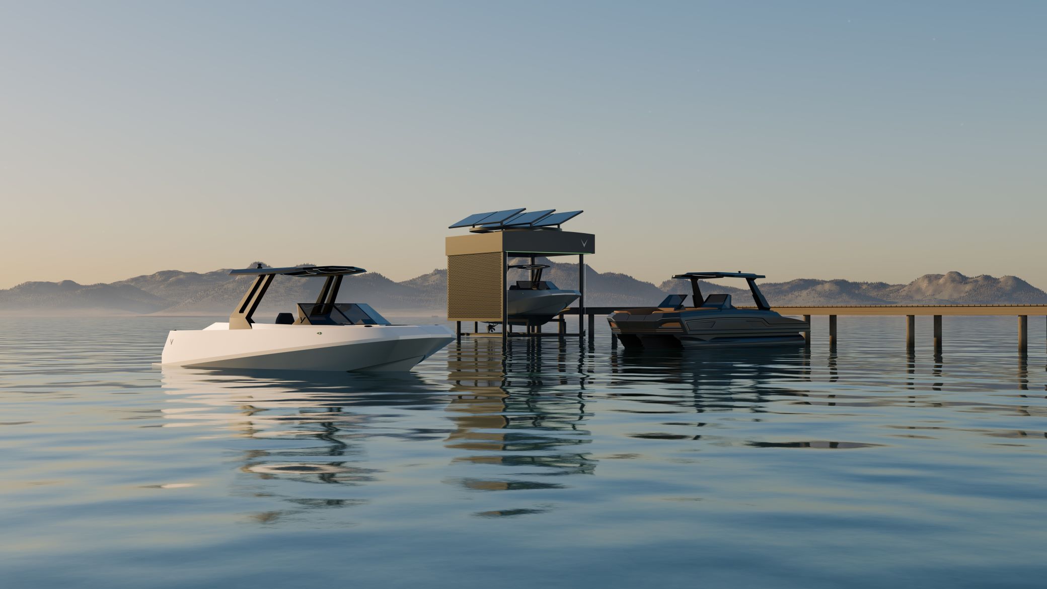 The boat maker’s partnership with Electric Outdoors is to introduce self-sustaining docks, boathouses, and entertainment systems that harness solar, wind, and battery technology to offer a completely off-grid energy independence for waterfront properties.