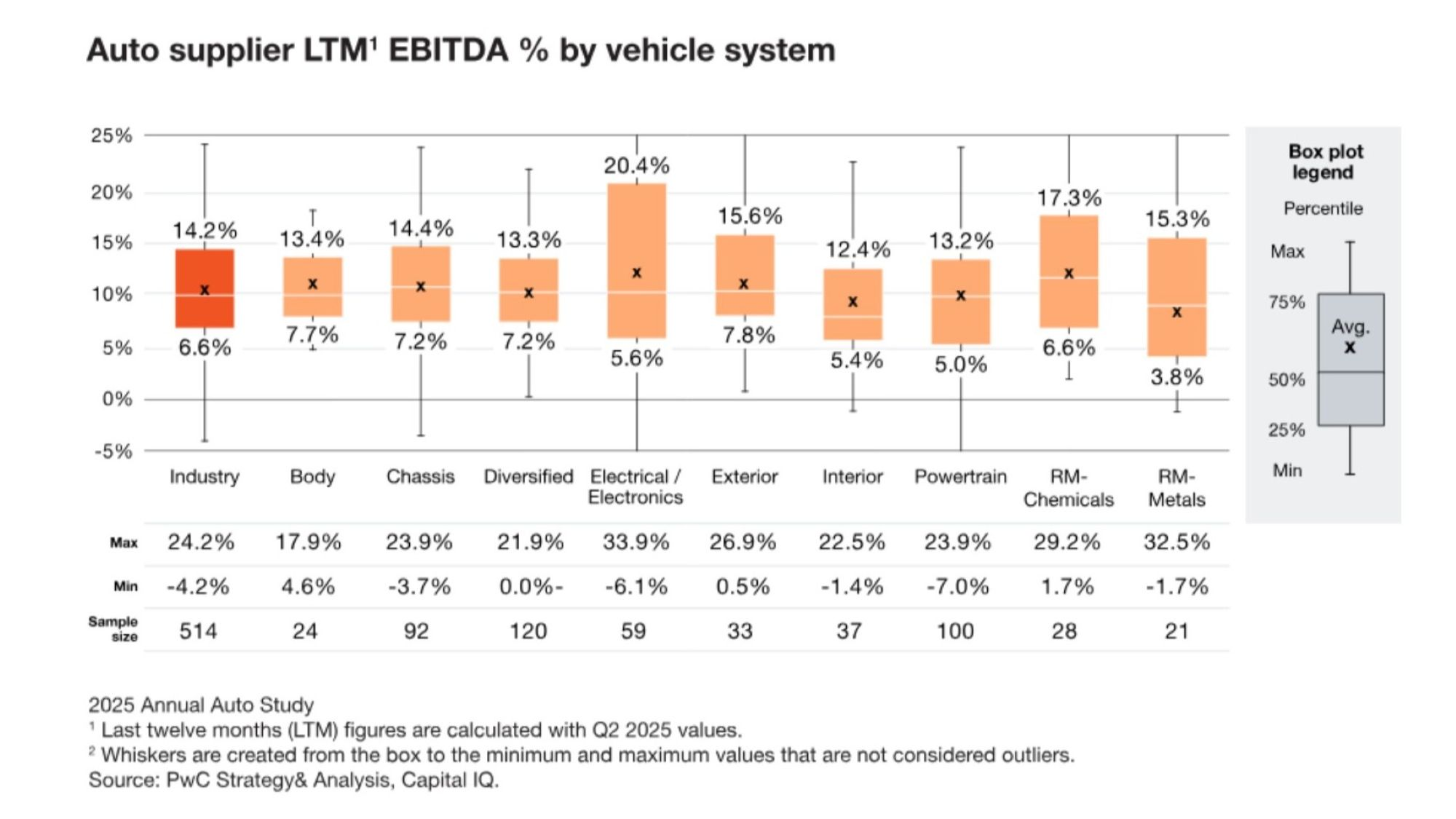 Suppliers specializing in electronics, chemicals, and metals have experienced margin pressure due to cost volatility and commoditization. Conversely, exterior trim and powertrain suppliers enjoy stronger demand signals and more stable cost bases, cushioning them from margin erosion.