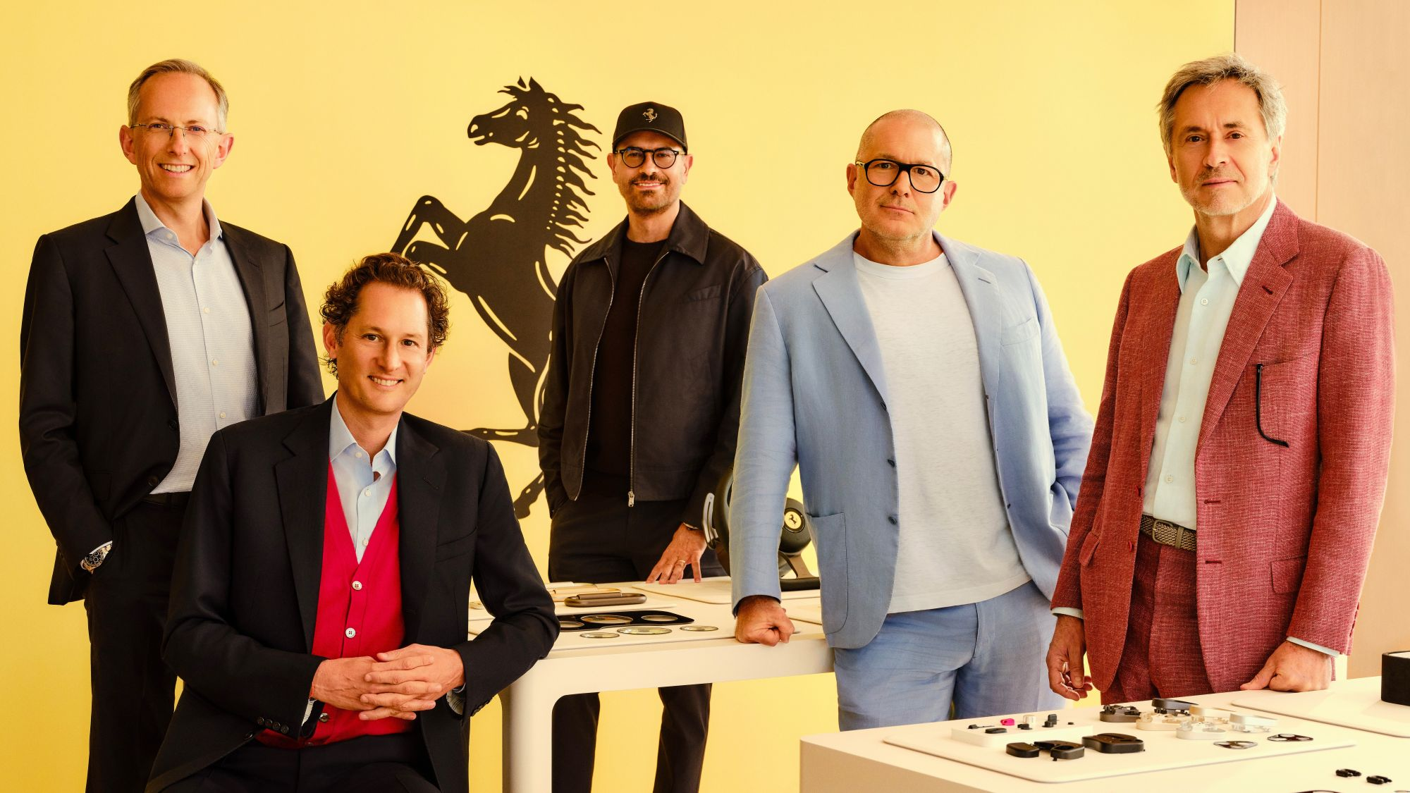 - From L to R – Benedetto Vigna, John Elkann, Flavio Manzoni, Jony Ive, and Marc Newson.