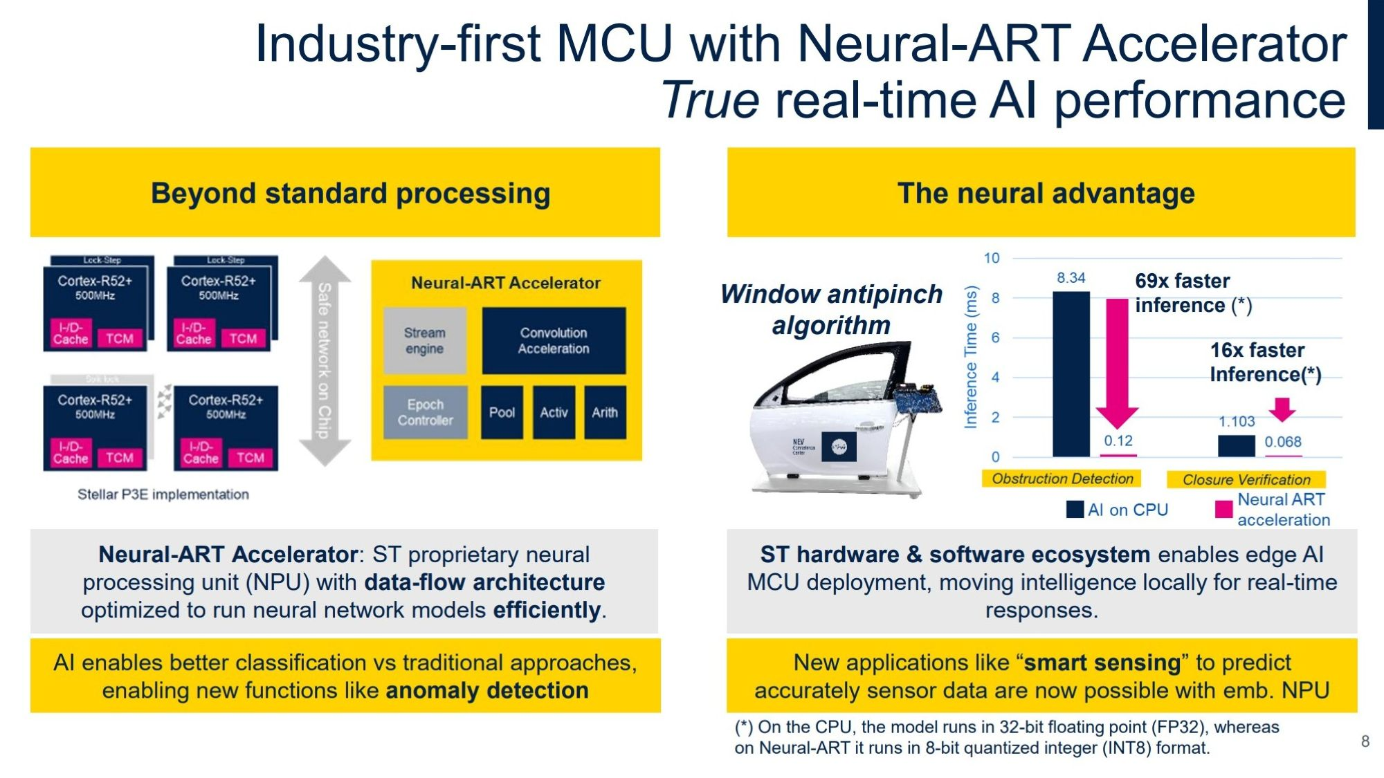 The driver binnacle (with instrument cluster) moves with the steering wheel, optimizing the driver’s view of the instrumentation and supporting driver performance. It merges digital and analog elements in a self-contained unit, moving in sync with the wheel’s rake and reach. It features two overlapping OLED displays with crisp graphics, vibrant colors, and leading contrast.