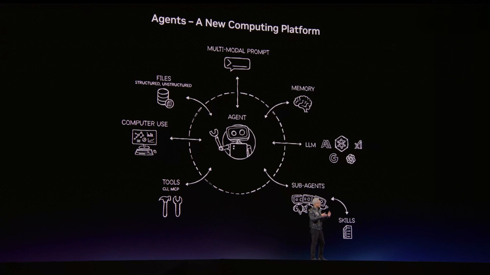 As Huang describes it, it is an agentic system that can access tools, file systems, LLMs (large language models), and it is able to do scheduling, decompose a problem step-by-step, and can call upon other sub-agents. A user can talk to it in any modality, and it understands and can send messages, texts, and emails.
